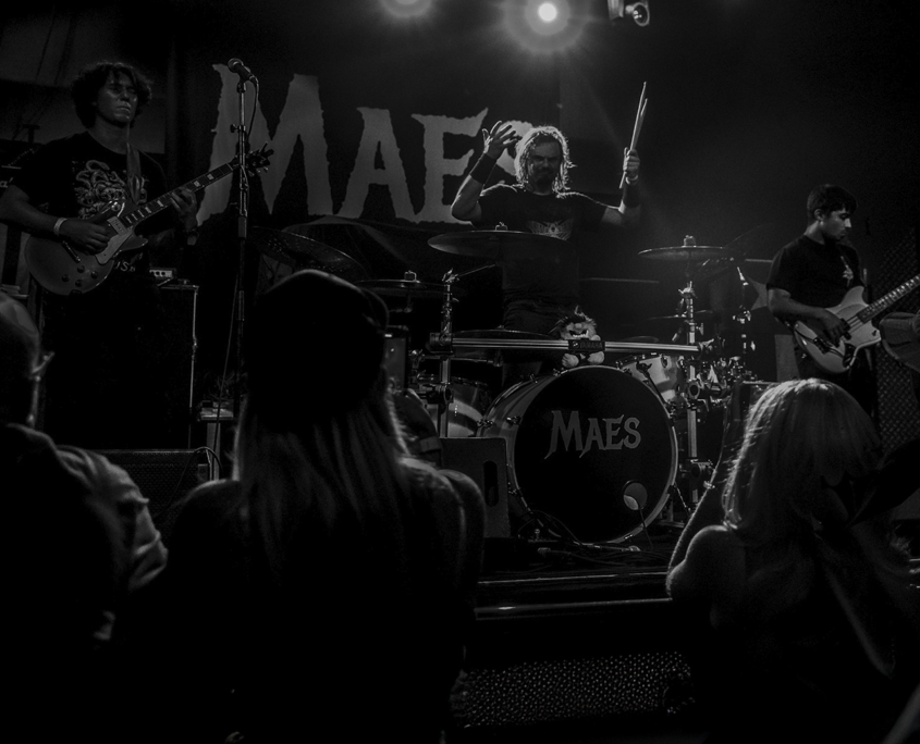 The crowd packed shoulder-to-shoulder as MAES launched into a furious opening set. Their sound — tight, melodic, and defiantly loud — filled every corner of the venue. Between crunching guitars and thunderous drums, the band delivered heartfelt vocals that cut straight through the chaos.